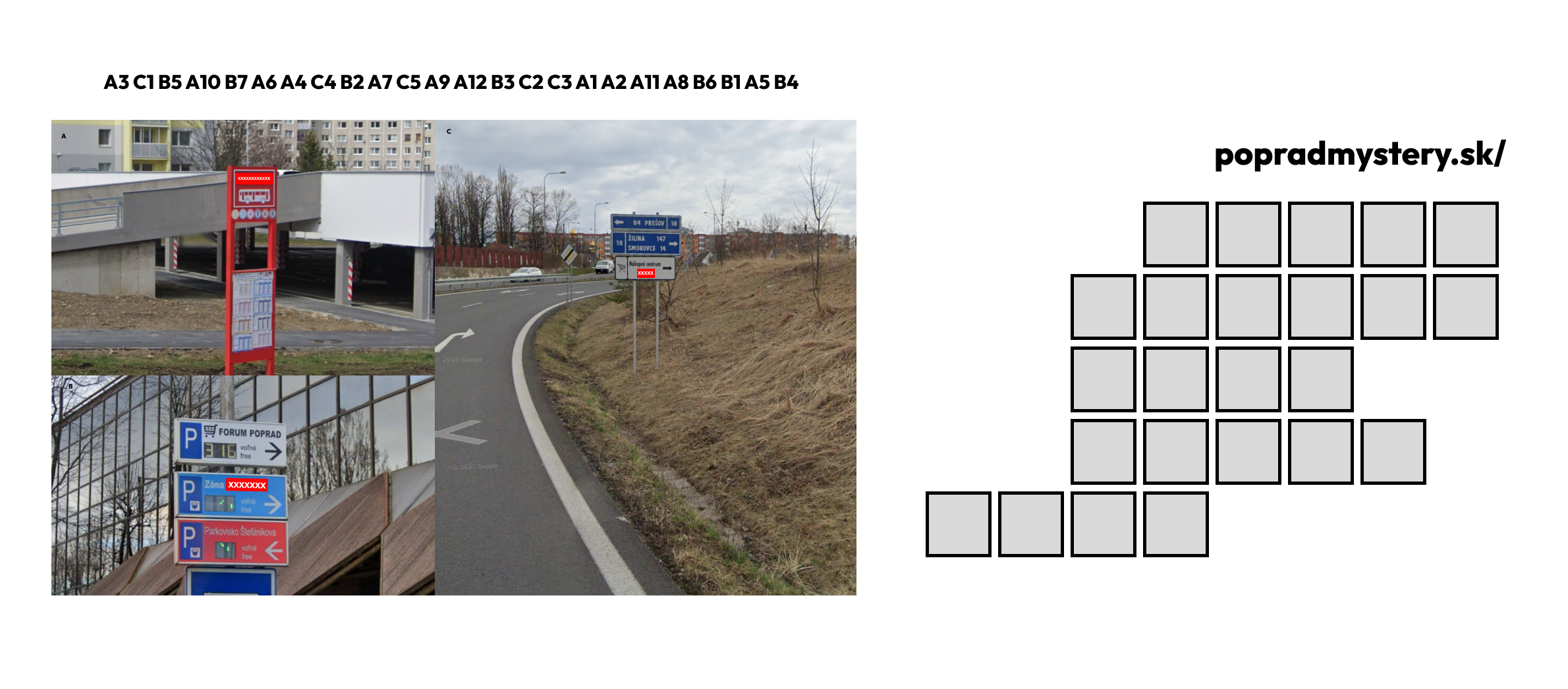 Nad políčkami je indícia, aby ste navštívili popradmystery.sk/(slovo, ktoré ste zistili) - čiže popradmystery.sk/start.
