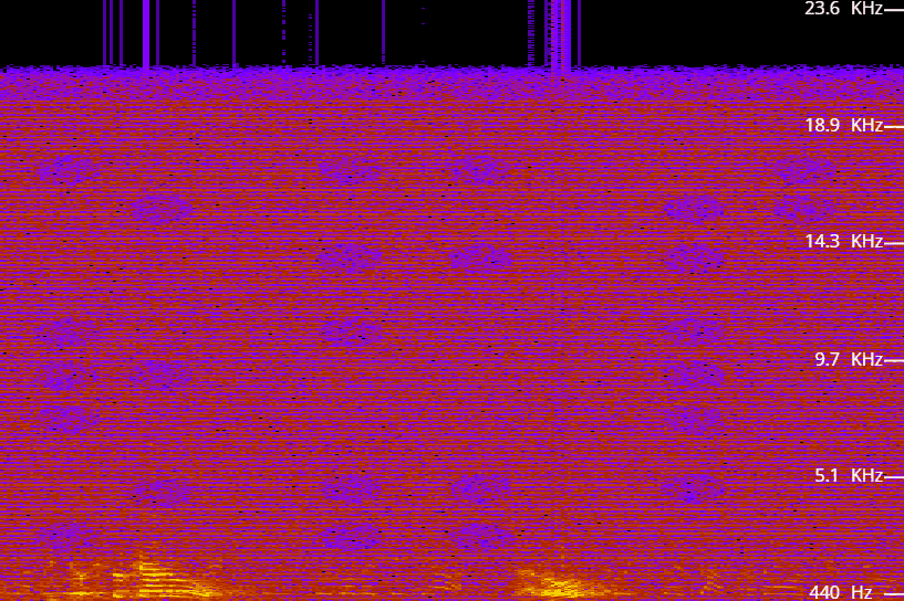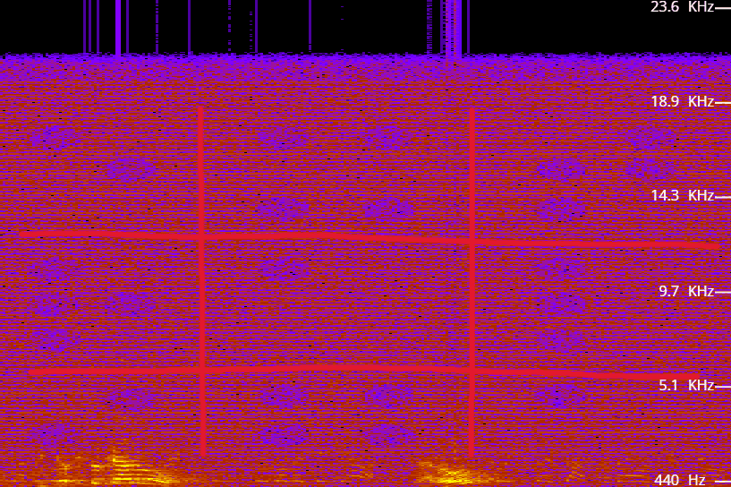 Spektrogram je grafické zobrazenie frekvencie zvuku v závislosti od času. Po načítaní zvukovej stopy do spektrogramu sa pri zvukovom šume na konci zobrazia kruhy v určitom usporiadaní.